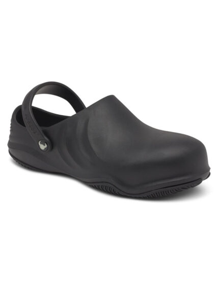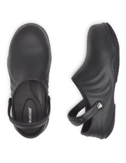 Tamanco fabricado em material polimérico SBS monologue, antibacteriano, anatômico, antiestático e antiderrapante. Adequado para lavagem na máquina de lavar e esterilizável a 140 ºC e até 30 minutos, anatômico com tira traseira dobrável entre o calcanhar e o cabedal, perfurado nas laterais para facilitar a transpiração, limpeza e evitar a penetração direta no calçado de líquidos ou fluidos, planta com micropontos de massagem para estimular a circulação sanguínea. Acessórios: pode ser fornecido com palmilha de gel, separadamente, para melhor distribuição da pressão na sola do pé, sua parte inferior é composta por ventosas que, ao serem pisadas, empurram o ar retido em seu interior para na sola do pé, reduzindo a transpiração e aumentando o conforto.